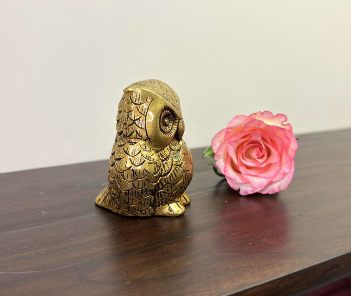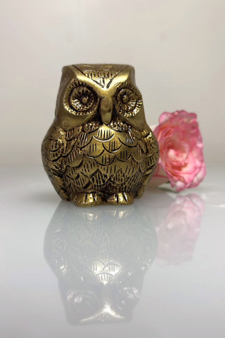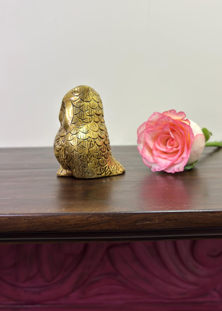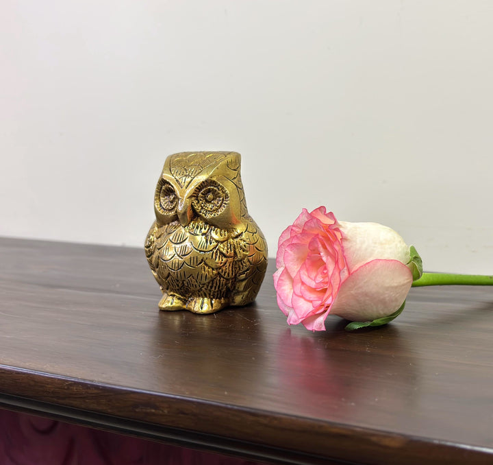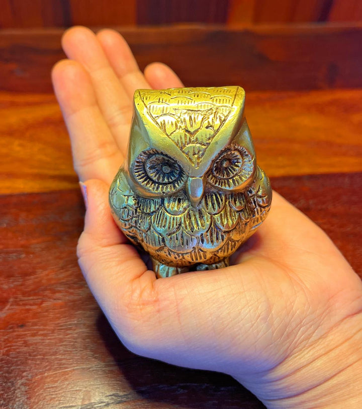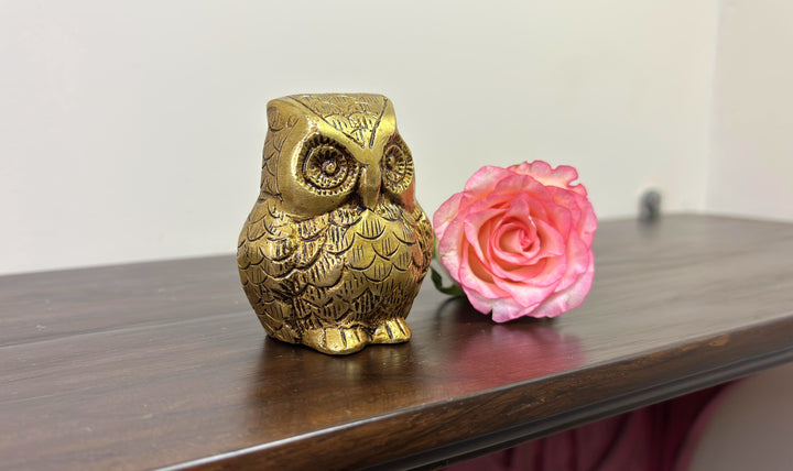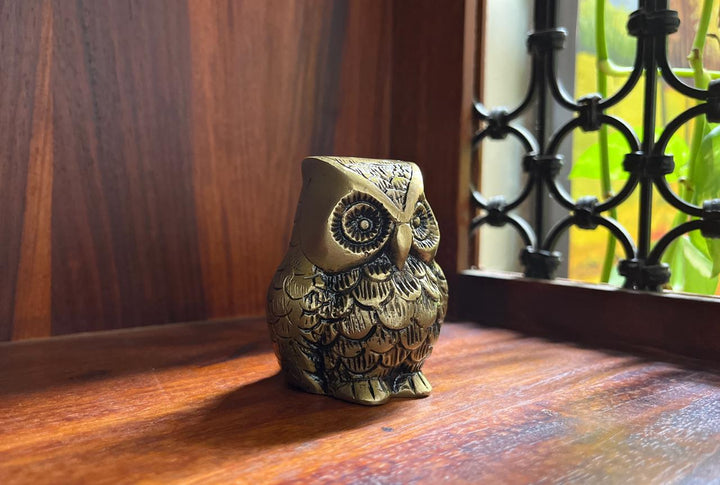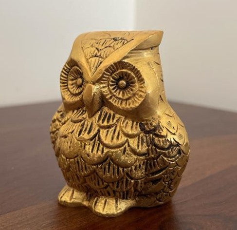 Invite good fortune into your home with this captivating handcrafted statue of Owl. Meticulously crafted from high-quality brass, this owl sculpture isn't just a piece of decoration but a symbol of knowledge, mystery, protection & prosperity; making it a meaningful addition to any space. Its compact size makes it perfect for shelves, desks or as a centrepiece on your coffee table. It also makes a thoughtful and unique gift for any occasion for family & friends.