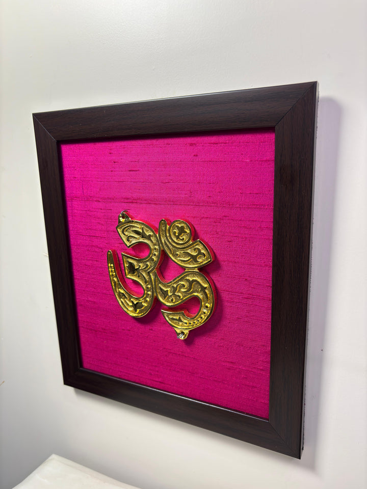 Aum Auspicious Symbol Pure Raw Silk Brass Wall Décor I Spiritual Symbol Om Wall Décor I Subh Chinha Wall Frame