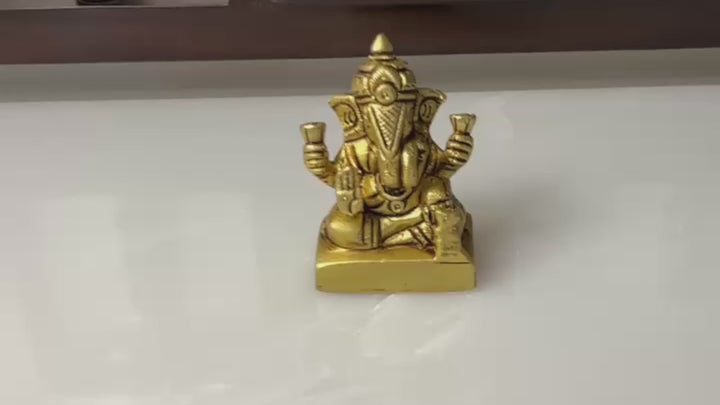 Brass Dagru Seth Ganesh Idol (2.75 Inch)