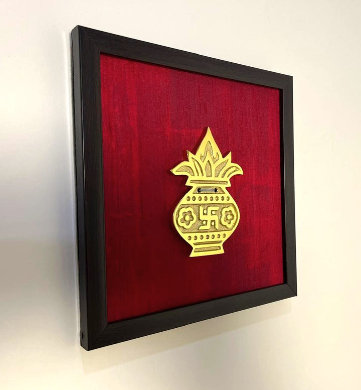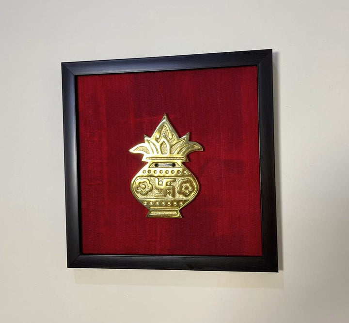 A sacred piece that blesses your home with auspiciousness and positive vibrations. Crafted not just with brass and silk, but with intention, devotion, and timeless wisdom. 9 Inches by 9 Inches Framed Wall Décor with a gleaming Brass Kalash on Red silk backdrop ideal for entrance lobbies, Living room, Meditation room or Home & Office temple space.