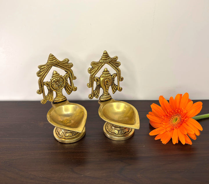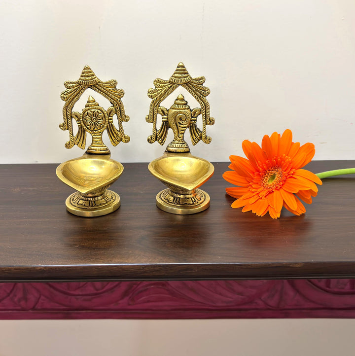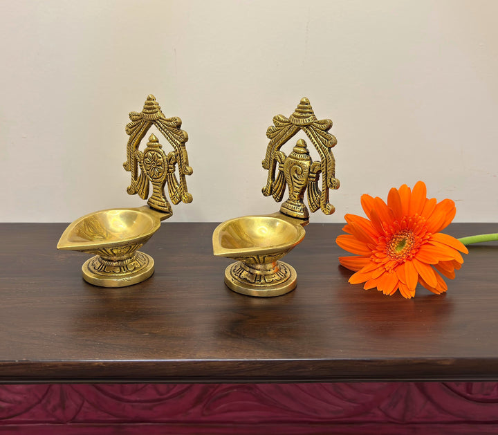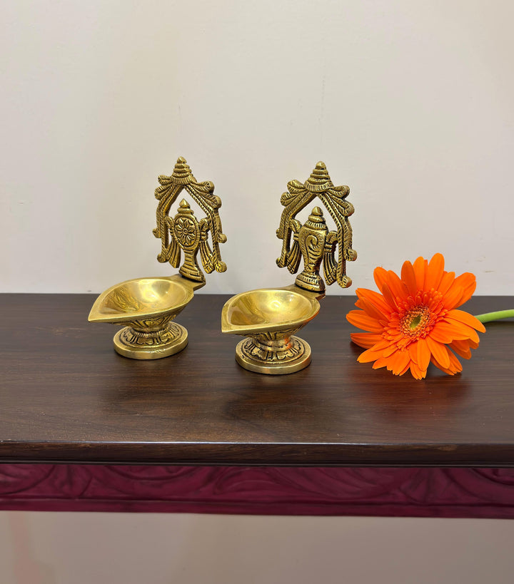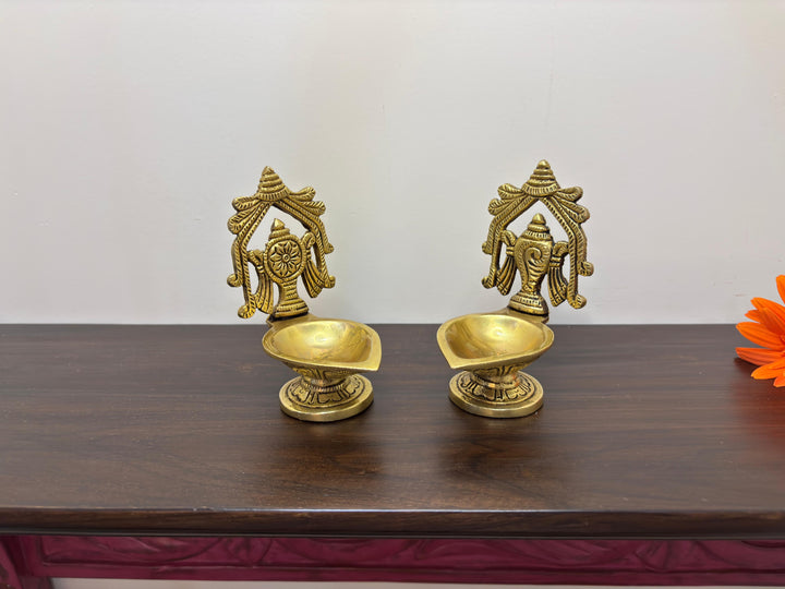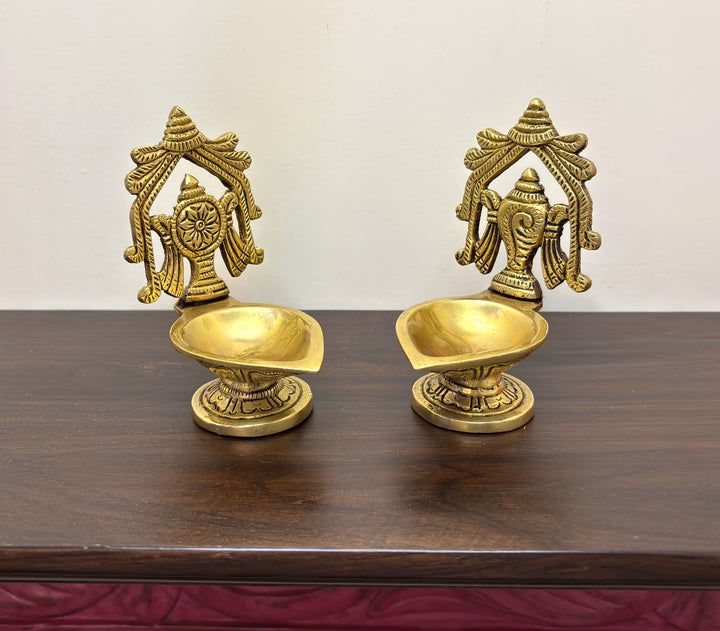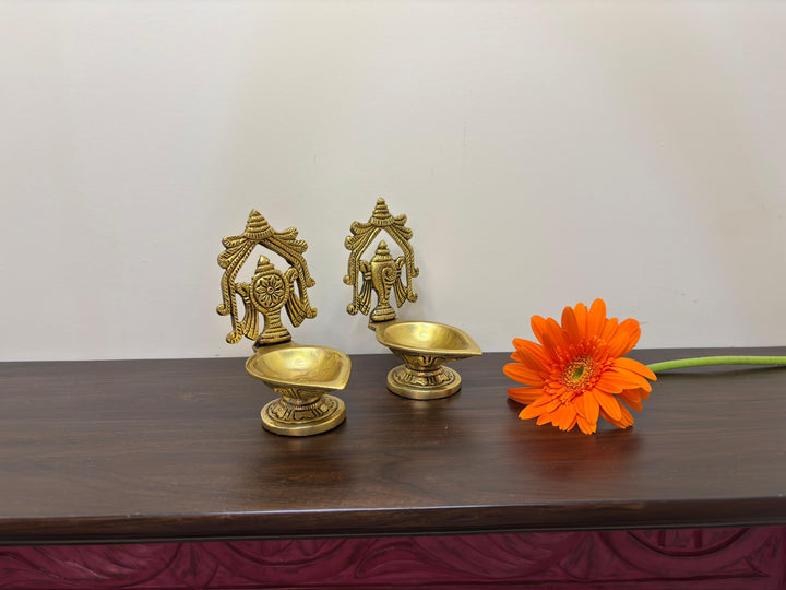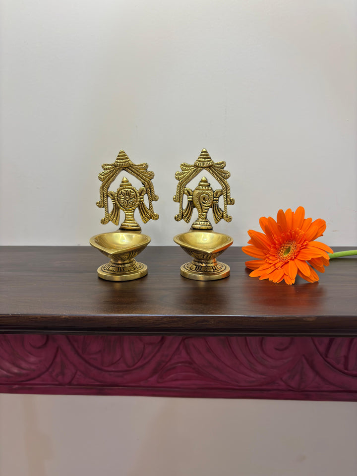 • Special Features: Pair of shankha chakra diya in Brass