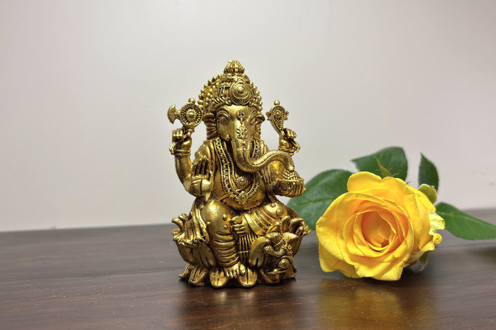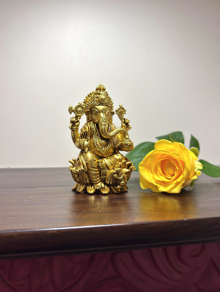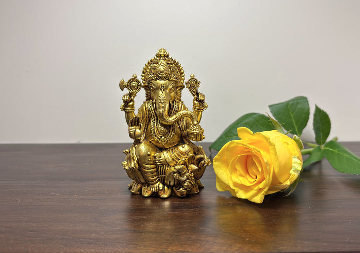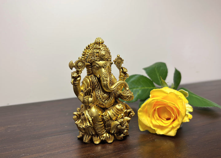 Yathashilpam Brass Superfine 3.5 Inches Lord Ganesha I Ganesh ji Murti
